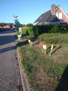 Erg mooie straatversiering van Kabouter Plop.