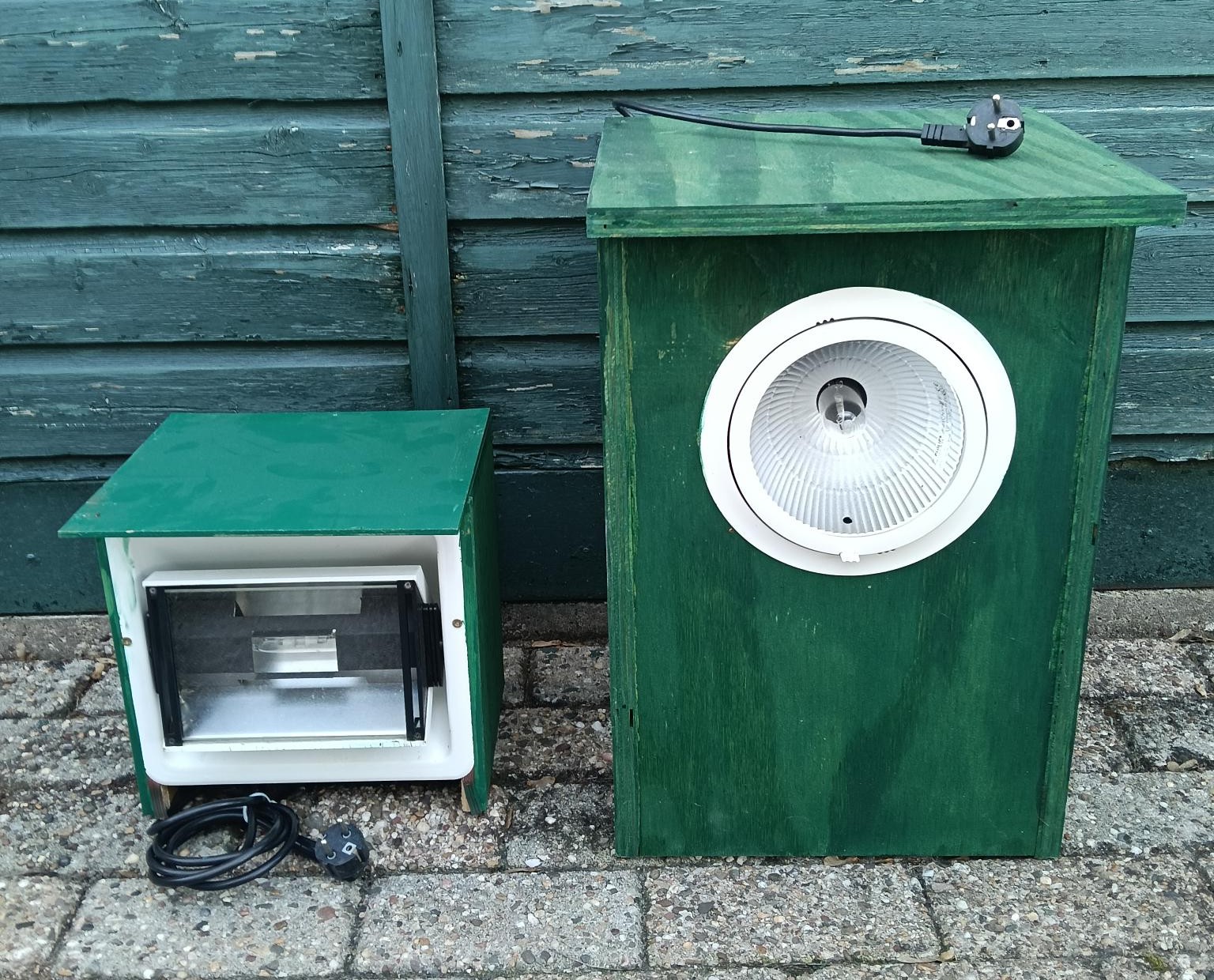 De blauwe bakken die op de foto staan die zijn er onderweg.