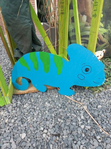 Bestaat uit 18 borden: 5 olifanten, 3 leeuwen, 1 giraffe, 1 tijger,4 zebra's en 4 handgeschilderde borden met aapjes